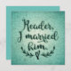 Esta design para amantes de livros tem a famosa citação do final da Jane Eyre de Charlotte Bronte quando ela casado o Sr. Rochester. "Reader, casei-me com ele".