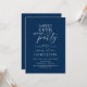Belo Cartão de Convite de jantar e festa pós-casamento em azul naval romântico moderno (Festa Felizes para Sempre). Este é perfeito para a celebração do seu casamento pós-fuga ou elopamento. Adicione seus detalhes em cor, fonte e letra correspondente.