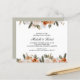 Com uma borda floral elegante em paleta sutil de laranja, rosa rosado, verde-sage marfim e branco ao redor de seus nomes e detalhes da festa em combinação elegante de letras cursivas e maiúsculas, este convite de jantar de ensaio de casamento é perfeito para uma celebração formal ou casamento elegante.