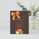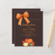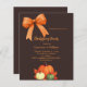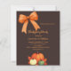 Um fundo castanho escuro e escuro. Decorados com abóboras, um arco desenhado à mão e um arco laranja. Personalize e adicione os detalhes da festa. 1 folha = 1 convite impresso de borda a borda.