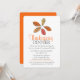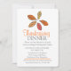 Convide seus amigos e família para um janta especial de Ação de Graças este outono com cinco folhas elegantes em cinzas, com pêssego laranja brilhante, rosa, roxo e folhas amarelas de mostarda em fundo branco Janto de Ação de Graças. Personalize com seus próprios detalhes. Arte e design da artista Sarah Trett.