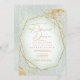 Um fundo de aquarela em tons de verde sábio é tocado por um abstrato de linhas de ouro finas e efeitos de iluminação reluzentes para criar as peças desta bela suíte de casamento. O convite de Janto de ensaio mostrado aqui também apresenta um belo quadro de gradiente para guardar todo o seu texto. Adicione facilmente seus próprios nomes, data do casamento e detalhes do evento usando o modelo fornecido. Procure ID867 para ver outras peças e opções de cores para este conjunto.