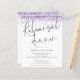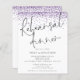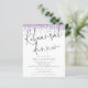 Um alternativo de 4,5 pol x 5,6 pol com preço inferior. Disponível em um STOCK DE CARTÃO SEMI-GLOSS 110 lb, que é a opção padrão (mais espesso para convites), OU um STOCK de PAPEL THINNER FINISH 80 lb FINISH (ideal para gabinetes). Os envelopes são um extra opcional e são ligeiramente maiores que o tamanho do cartão. Este design moderno tem um roteiro elegante de conjunto informal para o Janto de ensaio e uma borda de brilho de falso roxo no topo de cada lado. O resto da tipografia que você pode personalizar facilmente. Você também pode alterar as cores do texto e do plano de fundo em ambos os lados, se desejar através da opção Personalizar mais.