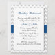 O convite do janto de ensaio de casamento Na moda moderno, feito em uma cinza pálida e um padrão de ziguezague branco. Uma banda azul federal, no meio, tem um texto branco personalizado, na frente do convite. Uma área de texto branca, na parte de trás do convite, tem texto personalizado preto e azul. Personalize todo o texto para atender às suas necessidades de evento. O convite adorável que o casal terá, com todas as lembranças do casamento.