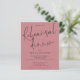 Um alternativo de 4,5 pol x 5,6 pol com preço inferior. Disponível em um STOCK DE CARTÃO SEMI-GLOSS 110 lb, que é a opção padrão (mais espesso para convites), OU um STOCK de PAPEL THINNER FINISH 80 lb FINISH (ideal para gabinetes). Os envelopes são um extra opcional e são ligeiramente maiores que o tamanho da placa. Este rosa moderno empoeirado tem um elegante roteiro informal para o Janto de ensaio e o resto da tipografia que você pode personalizar facilmente. Você também pode alterar as cores do texto e do plano de fundo em ambos os lados, se desejar através da opção Personalizar mais.