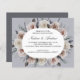 CONVITE DE CASAMENTO DE BAIXO CUSTO *** IMPRESSO EM BARATO, PAPEL DE PESO MAIS LEVE *** Este design apresenta uma elegante coroa floral de rosas e folhas e agulhas de pinheiros na paleta de cor d'água de rosa, marfim, creme e sombras de cinza empoeiradas com os detalhes do seu casamento mostrados numa combinação elegante de letra cursiva e maiúscula sobre um quadro branco (horizontal) . Perfeito para comemoração formal, ou casamento elegante com vibrações românticas de gótico. Placa inversa para uma cinza escura correspondente