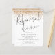 Um alternativo de 4,5 pol x 5,6 pol com preço inferior. Disponível em um STOCK DE CARTÃO SEMI-GLOSS 110 lb, que é a opção padrão (mais espesso para convites), OU um STOCK de PAPEL THINNER FINISH 80 lb FINISH (ideal para gabinetes). Os envelopes são um extra opcional e são ligeiramente maiores que o tamanho do cartão. Este design moderno tem um roteiro elegante de conjunto informal para o Janto de ensaio e uma borda de cintilação falsa de ouro no topo de cada lado. O resto da tipografia que você pode personalizar facilmente. Você também pode alterar as cores do texto e do plano de fundo em ambos os lados, se desejar através da opção Personalizar mais.
