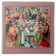 Pintado em 1503 por um artista anônimo do Oriente Médio, este painel retrata o janto mencionado em John 12:1-3 que ocorreu em Bethany após a criação de Lázaro e pouco antes de Jesus chegar a Jerusalém no Domingo de Palma. Como tal, o humor é comemorativo — mais alegre e menos sombrio que o da Última Ceia que aconteceu na quinta-feira seguinte (quinta-feira de manhã). É o painel central da altarta trítica que agarra o altar de Martha do coro sul da Igreja de Nossa Senhora (Liebfrauenkirche) em Oberwesel, Renânia-Palatinado, Alemanha. Aqui, Jesus e Seus Doze Apóstolos estão sentados em uma mesa redonda, presumivelmente uma de várias na sala desde que o Evangelho alude à presença de mais participantes, incluindo Lázaro. A mesa é vista até o momento, melhor para ver os artigos de mesa e os alimentos. Os Apóstolos conversam entre si. Uma (Rua. Bartholomew?) fatia pão. No centro de primeiro plano, Ruas. Martha, vestindo um avental e carregando um prato de peixe, serve (como Ruas. John o coloca de forma sucinta). Enquanto isso, Rua. Mary, erradamente identificada na época em que a peça foi pintada com a penitente Magdalene e uma mulher pecaminosa e anônima, ajoelha-se em frente. Ambas as mulheres vestem vestidos de materiais magníficos. Entre eles, ajoelha-se o doador, o Cânon Peter Luteran, que está representado numa escala muito reduzida. A cena lotada brilha com energia e o barulho implícito de conversas animadas e de chocantes loucos. + Veja também a Rua. Itens da Martha — aventais, luvas de forno, suportes de potharia e bandejas de serviço — da nossa série de Santos Apron (q.v.) para misturar e combinar! + Image Credit (M 055): Foto de Rolf Kranz de uma pintura de dominio público que tem mais de 100 anos da WikiMedia Commons (Por Rolf Kranz - Trabalho próprio, CC BY-SA 4.0, https://commons.wikimedia.org/w/index.php?curid=106002864). A foto foi cortada firmemente em um retângulo sem bordas.