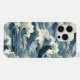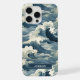 Make a statement with this iphone 15 pro max phone case that features rolling Japanese waves in multiple shades of teal blue. It's modern yet traditional. The pattern represents surges of good luck, peace, and eternal resilience. It becomes uniquely yours with your name in a CAP font in white on dark teal.