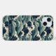 Make a statement with this iphone 15 plus phone case that features rolling Japanese waves in multiple shades of teal blue. It's modern yet traditional. The pattern represents surges of good luck, peace, and eternal resilience. It becomes uniquely yours with your name in a CAP font in white on dark teal.
