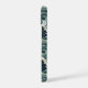 Make a statement with this iphone 15 phone case that features rolling Japanese waves in multiple shades of teal blue. It's modern yet traditional. The pattern represents surges of good luck, peace, and eternal resilience. It becomes uniquely yours with your name in a CAP font in white on dark teal.