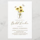 Convide convidados para o seu almoço de noiva com este convite de noiva. Apresenta girassóis em jarro de mason com sotaques de borboletas e um padrão floral de girassol correspondente. Personalize este convite para almoços de noiva rústico adicionando os detalhes do seu evento. Este convite para o almoço de flores solares é perfeito para o verão e chás de outono.