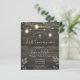 Tipografia de script rosa. Fundo de textura falsa de madeira, luzes de jarro, design de campo rústico. Primeiros convites orçamentais para comemoração da Comunidade. Você pode adicionar fotos à parte traseira ou texto adicional, se necessário.