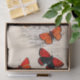 A mão bonita coloriu as borboletas que vibram sobre o lenço de papel botânico original das flores selvagens da caneta e da tinta.