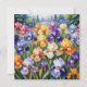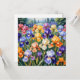 Cartão plano com ilustração colorida do jardim da íris