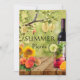 Um convite de festas de piquenique de verão com frutas e coquetéis frescos com girassóis e ramos de árvores. Bonita para um aniversário, piquenique de companhia, reunião de família ou outra reunião ao ar livre.