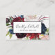Este cartão de visita de burgundy do jardim do outono é perfeito para um dono de pequenas empresas, consultor, estilista e muito mais! O design floral apresenta flores cor-de-água, flores, cor-de-rosa, vermelha, marinho e borrifadas, brilhantes, e folhas verdes formadas num buquê de outono vivo.