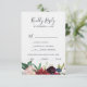 Esta carteira de cardápio do jardim do outono é a placa RSVP perfeita para um casamento outono. O design floral apresenta flores cor-de-água, flores, cor-de-rosa, vermelha, marinho e borrifadas, brilhantes, e folhas verdes formadas num buquê de outono vivo. Este cartão de resposta do casamento convenientemente pergunta aos hóspedes qual refeição eles gostariam na sua recepção.
