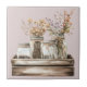 Este azulejo de cerâmica rústica traz o encanto de caserna de cottagecore para o seu espaço, com quatro jarras de pedreiro cheias de flores silvestres secas aninhadas numa caixa de madeira. Com o seu toque romântico de colheita, esta peça faz um belo sotaque para cozinhas, salas de jantar, ou interiores confortáveis inspirados no jardim. Um design eterno que combina calor rústico com elegância chic de cottage.