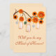 O dia perfeito de toda noiva inclui suas amigas. Quem você confia para dar um discurso e realizar tarefas como ajudá-la a escolher os vestidos das damas de honra para que o plano do seu casamento ocorra sem problemas? Seja sua irmã responsável, prima, sobrinha ou melhor amiga, este convite "Você será minha Dama de Honra" é uma maneira divertida de perguntar. Personalize o cartão alterando o texto nos campos fornecidos. Você pode alterar o estilo, tamanho e cor da fonte, tipo e estilo de papel, bem como a cor do fundo.