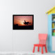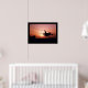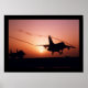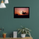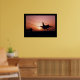 Poster mostrado com uma impressão fotográfica de um pôr do sol com jatos pousando. Personalizar este item ou comprar como está. com