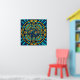 A magnificent circular stained glass art piece featuring two jazz trumpeters in harmony. With a vibrant royal blue and metallic gold mosaic finish, this unique musical poster is perfect for creating a classic jazz club atmosphere in your living room or studio.