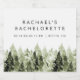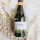 Este adesivo de etiqueta de vinho espumante de chá de soleira apresenta pinheiros de cor aquática verde e fontes rústicas; o design perfeito para um fim de semana de solteira de montanha. Use esta modelo para editar as fontes, a cor da fonte e a cor do plano de fundo para atender às suas necessidades de eventos.