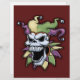 crânio de mau com grin grande de mau. Desenho original de caneta e tinta, com cores Mardi Gras digitais. T-shirts, suores, canecas, artigos de presente.