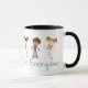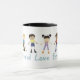 Os miúdos de cores diferentes vêm junto nesta caneca com as palavras "Jesus disseram o amor todos." Nesta versão os miúdos não têm nenhuma cara para sublinhar diferenças étnicas.