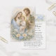 A gentle and consoling image of the Holy Family, rendered in soft blue and ivory tones that evoke peace, purity, and the promise of eternal rest. Delicate hydrangeas and white blossoms surround the sacred figures, creating a light and uplifting atmosphere rooted in hope.