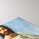 Jesus olhando para a Canvas das mulheres tem Jesus com os braços para o peito e caminhando para uma mulher que está chorando ao lado de uma casa e ele tem uma roupa azul e vermelha. esta é uma foto da vintage do início de 1900