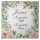 Uma citação inspiradora de azulejo de cerâmica de Natal mostra um belo design com rosas cor-de-rosa, bagas vermelhas, galhos de pínus e verde. Ele apresenta a saudação, "Jesus, Sem maior Presente, Sem Maior Amor."