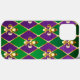 joias, fundo em Mardi Gras de losango roxo e verde, lírios de ouro decorados.