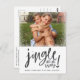 Jingle All Way | Cartão postal de Natal para neve fotográfica moderna - O cartão apresenta uma fotografia magnífica e uma tipografia escrita à mão que diz "Jingle All the Way". A saudação editável lê "Feliz Natal" e é personalizada com seu nome. Nosso modelo de alta qualidade torna tão fácil para você personalizar seu cartão para torná-lo exclusivamente seu. Mostrado a cores, mas também disponível em preto e branco. O cartão faz parte de uma coleção. Desenvolvido por Beverly Arena-Bainbridge Magnolia & Thistle email:bev@magnoliaandthistle.design