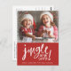 Jingle All Way | Cartão postal de Natal para neve fotográfica moderna - O cartão apresenta uma fotografia magnífica e uma tipografia escrita à mão que diz "Jingle All the Way". A saudação editável lê "Feliz Natal" e é personalizada com seu nome. Nosso modelo de alta qualidade torna tão fácil para você personalizar seu cartão para torná-lo exclusivamente seu. O cartão faz parte de uma coleção. Desenvolvido por Beverly Arena-Bainbridge Magnolia & Thistle email:bev@magnoliaandthistle.design