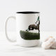Jumping Horse & Jockey Em Verde, Coffee Mug. Arte Digital "Se você subir na sela, esteja pronto para a carona." Aqui estão os passeios não tão fáceis. Steeplechase, cavalo de corrida e jóquei em verde. Altere o texto, a fonte ou remova-o completamente.