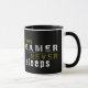 Jogador nunca dorme na caneca preta de café. O ditado perfeito para pessoas que adoram jogar. Esta caneca é uma ideia de presente de excelente para um jogador de verdade.