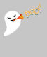 É uma design engraçada com um fantasma tocando um instrumento de vento e ele está cantando.