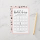 O cartão de jogo de chá de panela chic corresponde à nossa coleção de chás de panela Romance de Paris e apresenta letras brancas de script preto e bordas cor-de-rosa suaves com uma ilustração da silhueta da torre Eiffel no centro. Personalize com a noiva para ser o nome e a data do chá.
