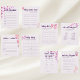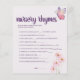 Parte da coleção Butterfly Kisses, este jogo Baby Nursery Rhymes é simples + divertido para todas as idades - basta completar tantas rimas de berçário quanto puder! Todo texto é personalizável para corresponder perfeitamente aos detalhes de sua ocasião ↣ clicar no botão Personalizar. Misture com outros jogos dentro da coleção para um dia cheio de diversão! *AS RESPOSTAS SÃO MOSTRADAS EM "" NA TELA 'PERSONALIZAR'.