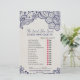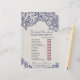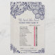 Este jogo de burlap e marinho lace "ele disse que ela disse" é perfeito para um chá de panela de tema quântico do país. A frente do cartão de jogo apresenta "ele disse que ela disse" o que é um teste divertido sobre noiva e noivo. A parte de trás do cartão contém uma palavra encontrada com palavras e frases relacionadas ao casamento. A design apresenta lindas e delicadas flores azuis num fundo branco creme e uma fonte feminina moderna de caligrafia. Personalize o cartão de jogo com o nome das noivas e a data do chá de panela.