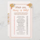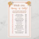 Esta Mamãe retrógrada ou o Jogo de Adivinhação do Chá de fraldas é sempre um sucesso. Esta design é perfeita para um tema neutro em termos de gênero com estética boho que apresenta o padrão floral moderno do século médio e a tipografia de groovy. Este tema do chá de "olá, bebê" é divertido e tendencioso com uma grande elegância. Retro cores, vísceras e um giro moderno! Parte da coleção de Chás de fraldas Florais Retro Boho Neutro por Sexo. Faça com que estes convites únicos para chuveiros de bebês, decoração de festas e louças sejam seus próprios, clicando em "personalizar".
