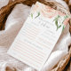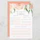 Este cartão de jogo de previsões e conselhos para o bebê Sweet Baby Girl é uma maneira encantadora de envolver os convidados e criar um souvenir significativo para os futuros pais. Com rosas em aquarela cor de rosa, folhas de eucalipto e bagas brancas suaves, o design floral emoldura espaços para que os convidados prevejam detalhes do bebê e compartilhem conselhos doces ou votos de felicidade.