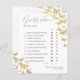 Borboletas douradas, desenhadas à mão em aquarela e sobrepostas digitalmente com dourado e brilhos (isto NÃO é folha de ouro verdadeira!) decoram este simples e elegante cartão de jogo de adivinhação personalizado "Adivinhe quem..." de estilo boho chic com caligrafia moderna. Personalize-o completamente, com o nome da noiva, a data e cada uma das dez perguntas.
