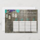 Este ótimo jogo scattergories para chá de noiva rústico fará seus convidados sorrir em pouco tempo! Este jogo de festa apresenta um fundo de madeira de celeiro rústico com flores turquesa e roxas no topo com jarros de mason pendurados nelas. Dentro dos jarros de mason estão as palavras "amor" em várias cores. Um ótimo jogo de festa de casamento que os convidados vão falar por anos!