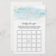 Este jogo de bingo de bebê azul-aquarela e dourado brilha é perfeito para um chá elegante de bebê. O design luxuoso apresenta uma textura azul-clara de aquarela com um salto de belo brilho de ouro falso e uma fonte moderna de escrita de caligrafia. Nota: Este design não apresenta brilho de ouro real. É um gráfico de alta qualidade feito para parecer um brilho dourado.