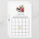 Traga o entusiasmo das corridas para o seu chá de panela "Off to the Altar" com este cartão de jogo de bingo inspirado em Derby. A frente apresenta um elegante chapéu de senhoras com uma rosa vermelha e um pinto de menta com uma grade de bingo de noiva personalizável, enquanto o reverso apresenta uma ilustração vibrante de corridas de cavalos. Perfeito por adicionar um toque de charme sulista e diversão para o seu chá de panela ou celebração com o tema Derby.