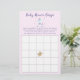 Divirta-se no seu chá de fraldas com este cartão de jogo bingo. Ilustração de um unicórnio fofo com cabelo mágico e milho dourado. O jogo de bingo aos hóspedes para adivinhar quais os presentes que as mamães irão receber. Cartão de excelente para um chá de fraldas de tema de unicórnio mágico para uma garota. Design cor-de-rosa, roxo e dourado. Ilustração original e design do Namibear Art Studio. ©BELGA_REDE