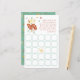 Adicione uma reviravolta divertida ao seu chá de fraldas com este cartão de jogo de bingo moderno do século médio. Apresentando estereótipos atômicos retrorreflectores, formas mod e tipografia ousada dos anos 50, este cartão bingo de presente para bebês é a atividade interativa perfeita para convidados. Os jogadores preenchem presentes que pensam que os pais a serem receberão e depois os marcam quando os presentes forem abertos. Uma na moda para manter a festa divertida e no tema!