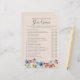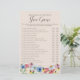 Jogo de calçado para Chá de Casamento ou Casais, personalizado com o nome da noiva e do noivo. O jogo de perguntas tem 20 perguntas que você pode editar se desejar. Esta design botânica de aquarela tem uma bonito borda de flores silvestres, incluindo trevo e bluebell, como a daisy poppy cornflower coneflower. Uma floral moderna elegante com caligrafia de salão. Perfeito para o país rústico, cottagecore/centro rural ou boêmio, floral, tema do jardim natural, etc. Por favor, procure na minha loja, coleção de Charme de Flor Selvagem, convites e itens correspondentes ou envie-me uma mensagem para criar modelos para produtos correspondentes para você.